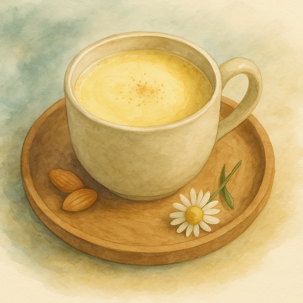 Gentle, caffeine-free, and deeply calming, this chamomile almond latte is one of my favorite afternoon or evening rituals. The floral warmth of chamomile blends with the subtle nuttiness of almond milk for a drink that soothes the nervous system and supports rest – a lovely way to unwind or prepare for sleep.
